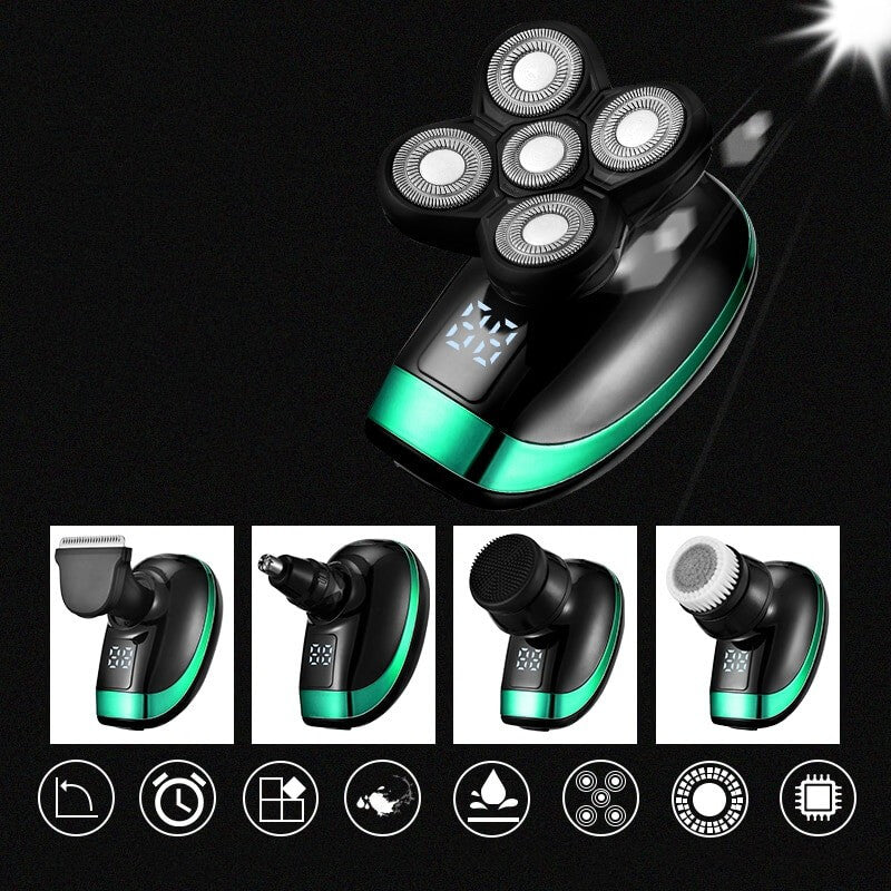 • 5IN1: Vår multifunktionella rakapparat för män har fem huvuden som anpassar sig efter ansiktets konturer för en intelligent och exakt rakning. Den levereras med en popup-trimmer för exakt trimning av mustasch och polisonger. Dessutom ingår ett precisionstrimmerhuvud, ett trimmerhuvud för näsa och öron, en mjuk ansiktssvamp och en rengöringsborste för ansiktet.