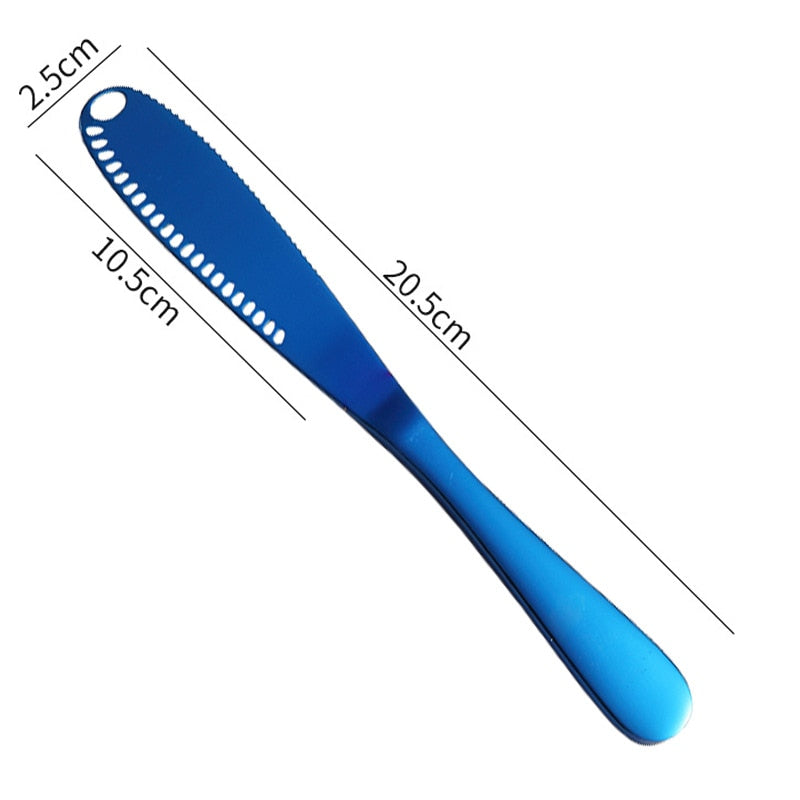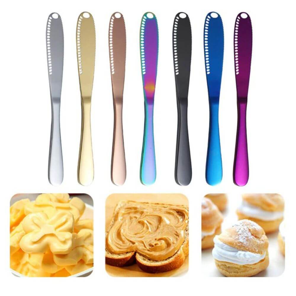MÅNGSIDIGT KÖKSEDEL: Utöver smör är denna kniv mångsidig för att breda mjuka ostar, sylter, geléer, jordnötssmör och mer. Dess konstruktion i rostfritt stål gör den motståndskraftig mot korrosion och säkerställer att den inte reagerar med mat eller rengöringsmedel.
