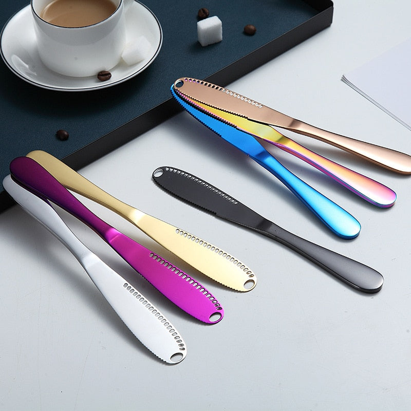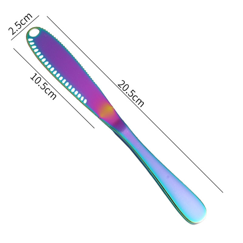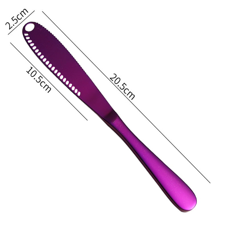 Säg adjö till frustrationen av trasigt bröd och ojämna smörningar. Vår Multifunktionella Smörkniv är här för att revolutionera din matvanor. Tillverkad av högkvalitativt rostfritt stål glider denna kniv smidigt genom smöret och gör din frukost- eller snacksförberedelse till en enkel uppgift. Den ergonomiska designen garanterar ett bekvämt grepp, medan de urfrästa hålen i bladet förenklar processen att smörja kallt smör, vilket ger dig perfekt smörade rostade bröd varje gång.