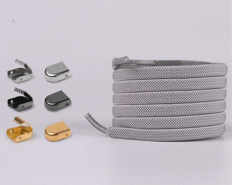 LÄTT ATT INSTÄLLA: Lätt som en plätt. Trimma helt enkelt den elastiska spetsen så att den passar och fäst dem med spännenas spänne. Knyt aldrig dina skosnören igen!