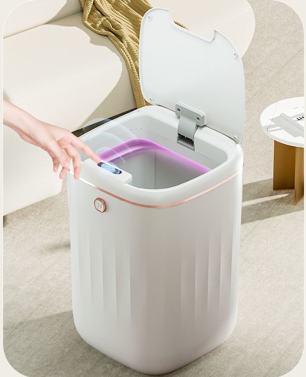 LÄTT FRAMTID: Utrustad med en smart sensor kan den här soptunnan öppnas på tre sätt: fotspark, induktion (vifta med händerna/böjda knän) och automatisk knapp. Den öppnas och stängs ljudlöst utan något högt ljud.