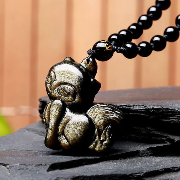 Obsidian Fox Spirit Amulet är ett vackert och symboliskt smycke. Det här smycket är hugget av ren obsidian och är en kraftfull jordsten som skyddar sina ägare och ger bäraren den styrka som behövs för att stå på sin övertygelse mot alla fiender.