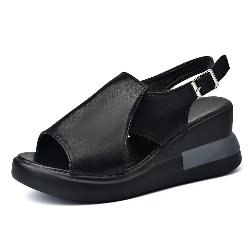 MÅNGSIDIGA FÄRGER: Tillgängliga i olika färger är dessa platåkilsandaler med öppen tå lämpliga för alla tillfällen och låter dig enkelt matcha dem med olika klädesplagg.