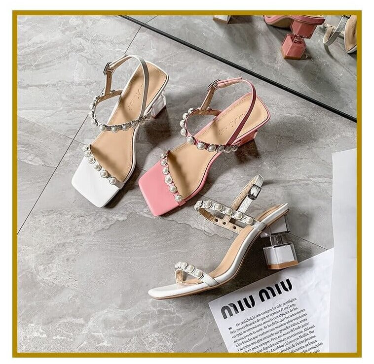 ELEGANT DESIGN: De har ett vackert pärlspänne, en ca 7,5 cm hög klack och remmar som omsluter vristen för att lägga till ett extra stilelement till din vardagliga monotona klädsel.
