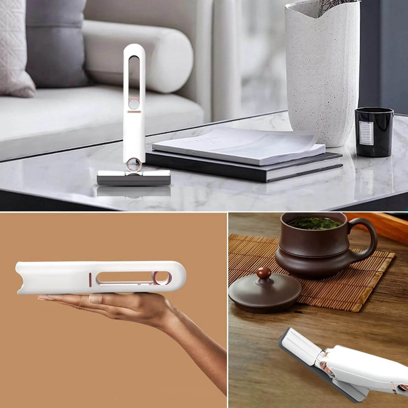 Upptäck bekvämligheten med att städa med vår bärbara självklämmande mini-mopp.