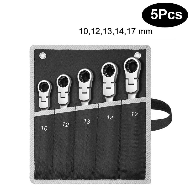 Rattnyckeln med flexibelt huvud kan effektivt lossa eller dra åt skruvar, och huvudet med öppen ände gör att du kan fixa slangar som är svåra och svåråtkomliga.