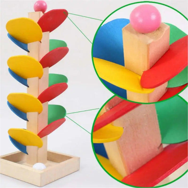 Upplev magin i vårt Rainbow Cascade Ball Tree, där lärande möter skoj! Denna fängslande leksak är tillverkad av högkvalitativa, säkra trämaterial och har färgglada kronblad och 2 förtjusande bollar. När bollarna rullar nerför kronbladen fylls luften av ett melodiskt "jingle" som engagerar ditt barns sinnen och främjar den kognitiva utvecklingen.