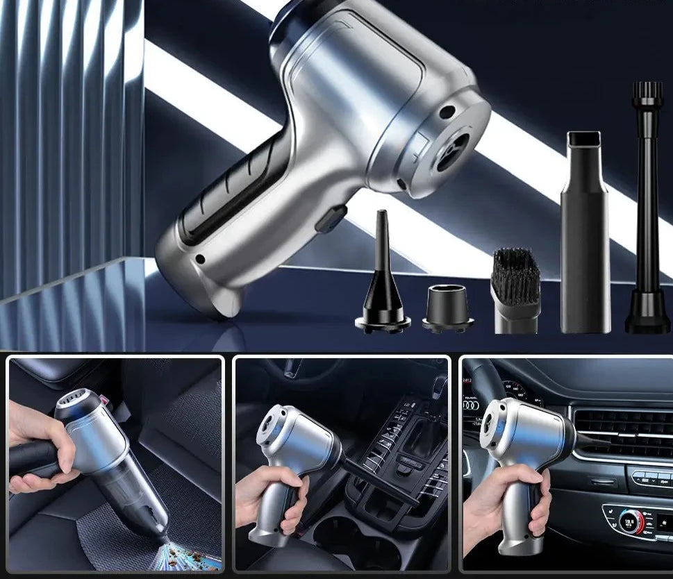 Har du inte tid att få din bil professionellt rengjord? Inga problem! Gör jobbet själv med den här Sladdlös Multifunktionell Bildammsugare. Med en specialmotor för luftfart och förbättrad hastighetsteknik ger den här dammsugaren din bil en kraftfull rengöring - gånger snabbare än andra!