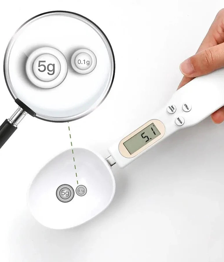 HÖG PRECISION OCH BEKVÄMLIGHET: Detta köksredskap har hög precision med en stegring på 0,1 g, så att du kan uppnå perfekta proportioner i dina recept. Den är utformad för bekväm och enkel användning, och den löstagbara skeden gör den lätt att rengöra och förvara.