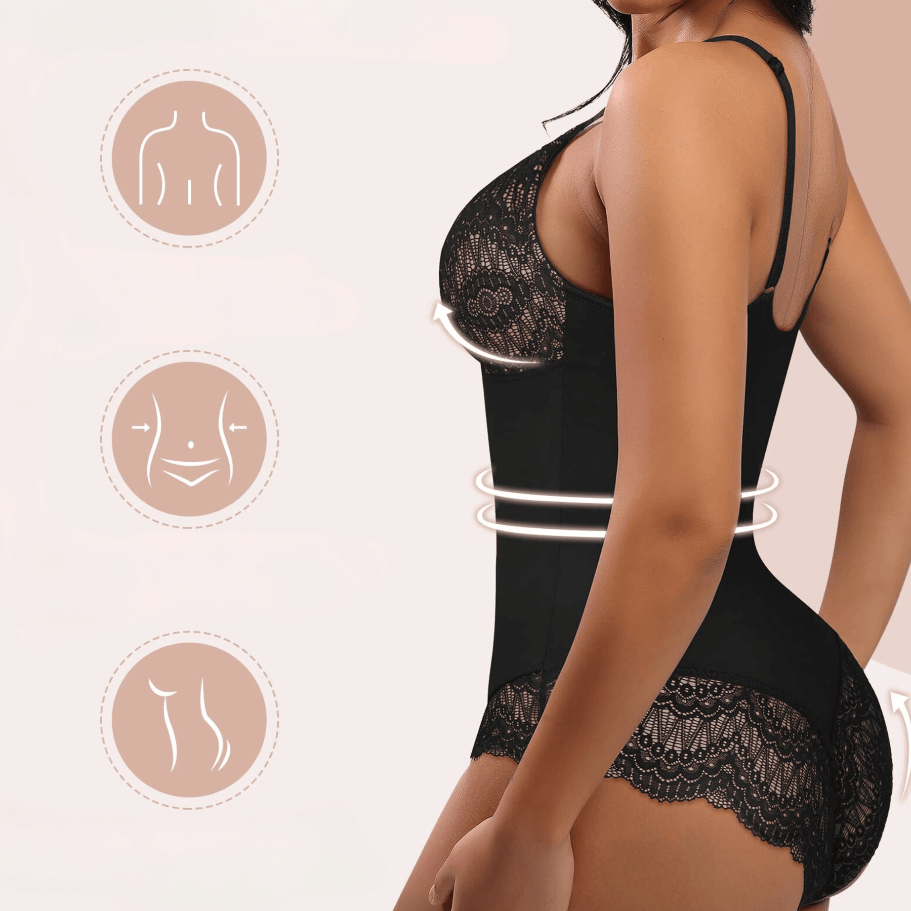 Är du redo att återupptäcka självförtroendet? Med vår V-ringade spetsbodydräkt kommer du känna dig oemotståndlig och bekväm varje dag! Vår damformande underkläder har mjukt, hudvänligt och mycket elastiskt dubbellagers nätmaterial som ger ultimat kontroll över magen. Denna body sitter tätt, säkerställer komfort och visar upp din timeglasfigur hela dagen. Den släta tyget och den förtrollande blomdesignen gör den till en attraktiv shapewear bodydräkt som passar för varje säsong.