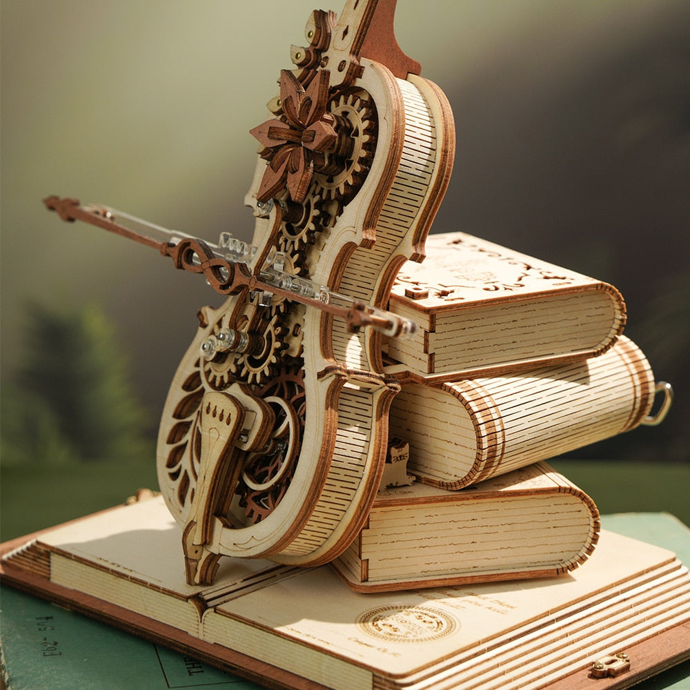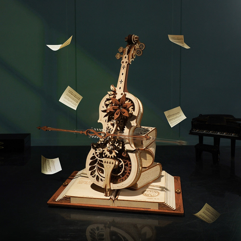 3D-PUSSEL I TRÄ: Magin kan börja med 3D-pusslet som integrerar cellon i en mekanisk speldosa och förvandlar musikaliska konstverk från 1700-talet genom att införliva traditionell elegans och skönhet i den design som alltid har älskats av många.