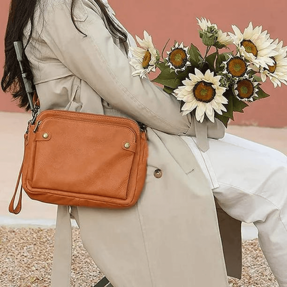 UPPLEV TIDSLÖS STIL OCH FUNKTIONALITET MED VÅR TRE-LAGERS LÄDERHANDVÄSKA!