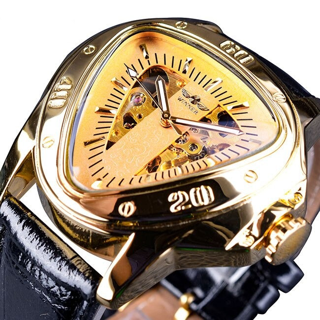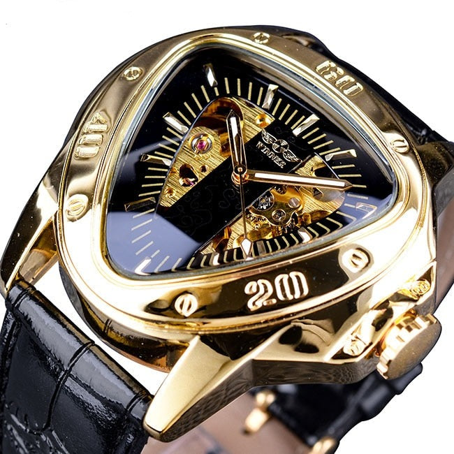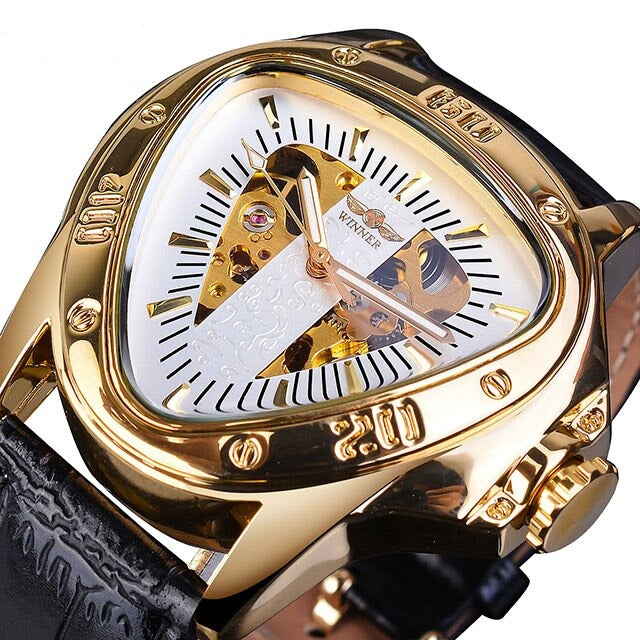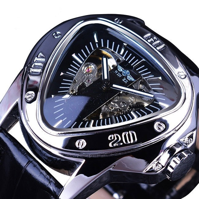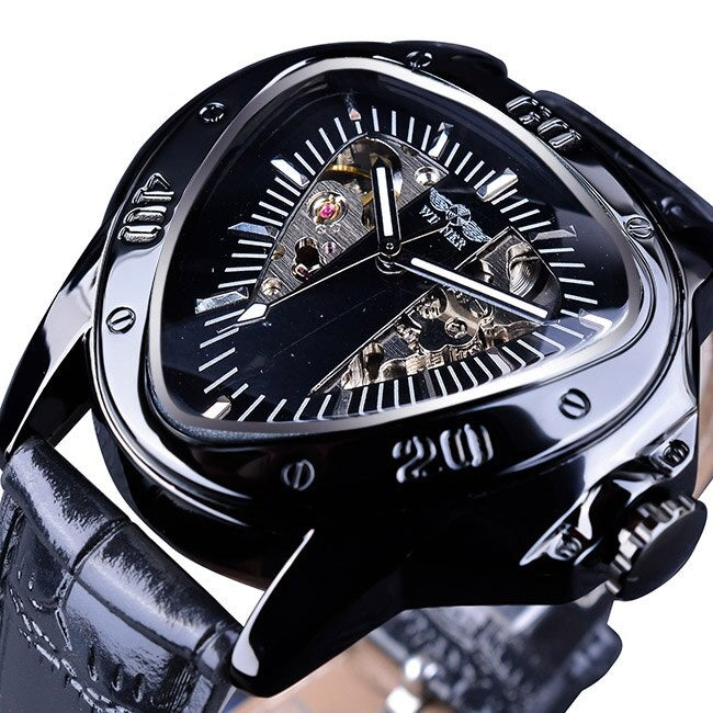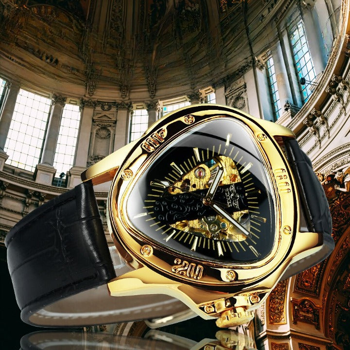 Den här mekaniska Triangle Skeleton-klockan är utformad för mystiska män i naturen och är klassisk och lyxig i en form som aldrig kommer att gå ur tiden! Ett smart sätt att använda tiden som är avgörande för framgång!
