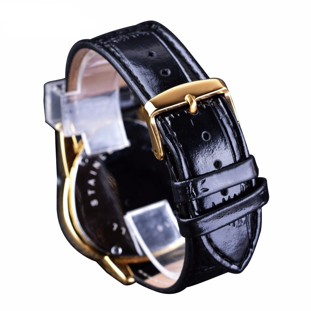 Med sin unika och eleganta triangelformade ansiktsdesign med skelettväxel och ett modernt läderband visar den upp ultimat kreativitet och gör ett starkt modeuttryck som representerar en traditionell och klassisk aristokratisk stil.