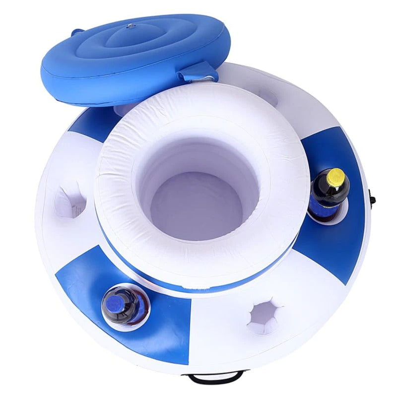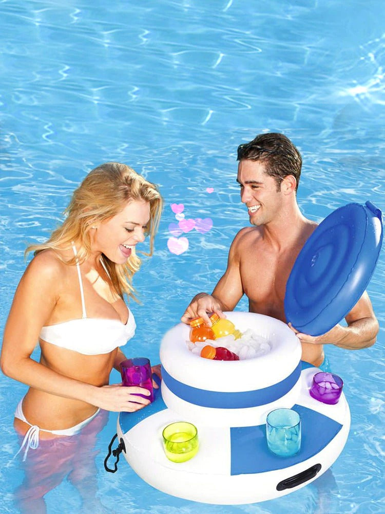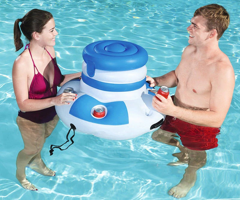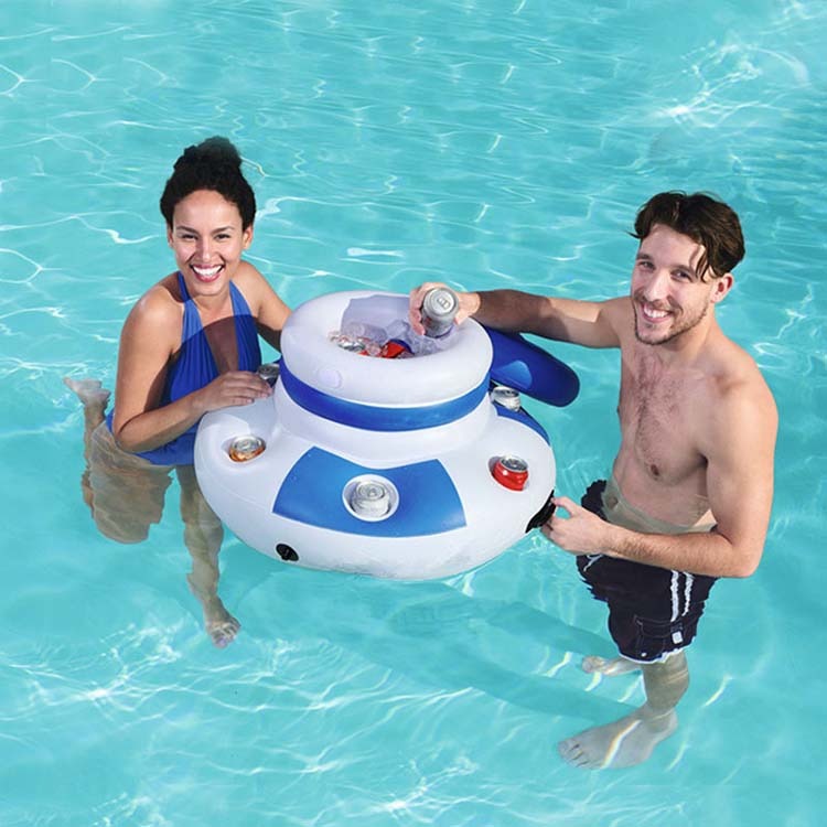 Njut av en uppfriskande dryck direkt i poolen med den uppblåsbara dryckeshållaren. Byggd med sex mugghållare och en hinkkylare för att hålla iskalla drycker är detta ett måste för varje poolparty på bakgården.