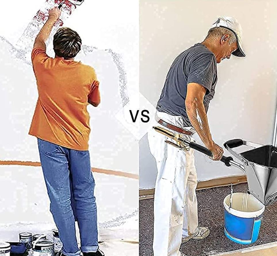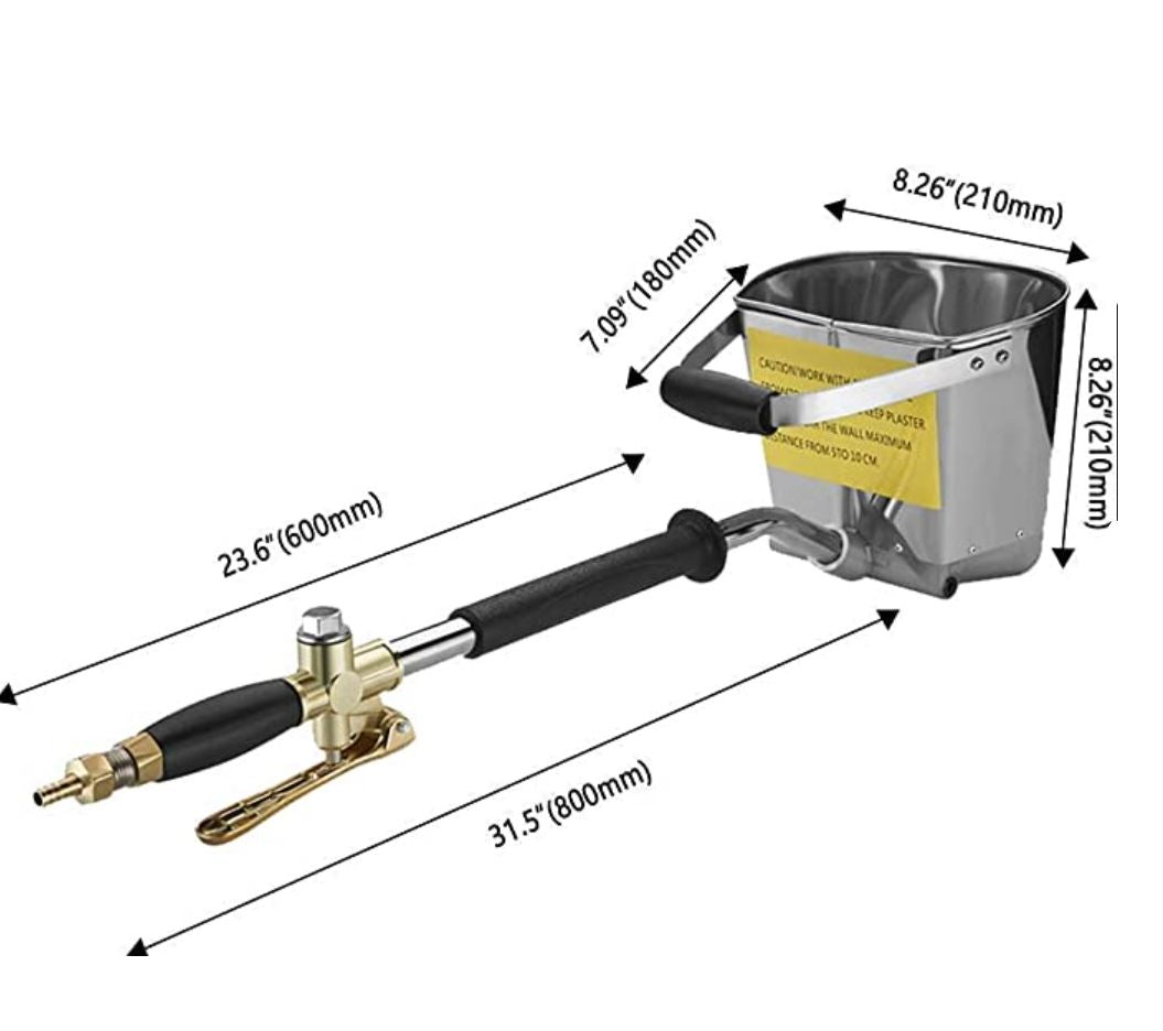 BRETT TILLÄMPBAR: Du kan använda den med luftkompressorer, murbruksspruta, gips, gips, liten stege, sprutbetong, jordblandning med mera. Den 45-graders hinkdesignen, inte bara för väggsprutning utan utmärkt för taksprutning.
