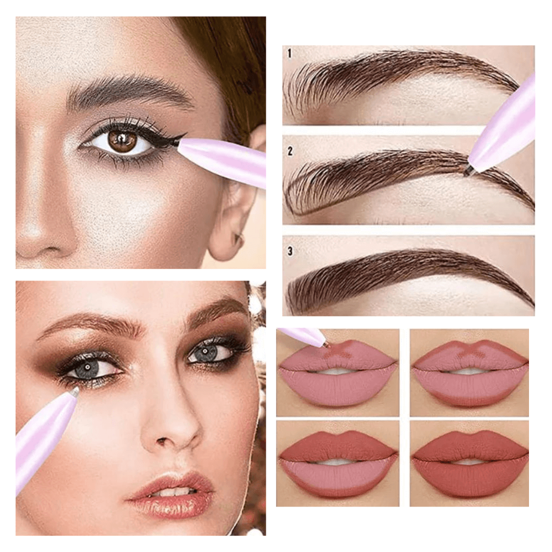 Upptäck hemligheten till problemfri skönhet med vår Vattentäta 4-i-1 Skönhetpenna. Denna allt-i-ett sminkessens är inte bara en penna - den förändrar spelet och förenklar din sminkrutin. Att uppnå snabb och felfri sminkning är lika enkelt som ett klick, vilket ger dig ögonpenna, ögonbrynspenna, läppenna och highlighter - allt i en enda, kompakt penna. Säg adjö till besväret med skrymmande skönhetsprodukter, särskilt när du är på språng.