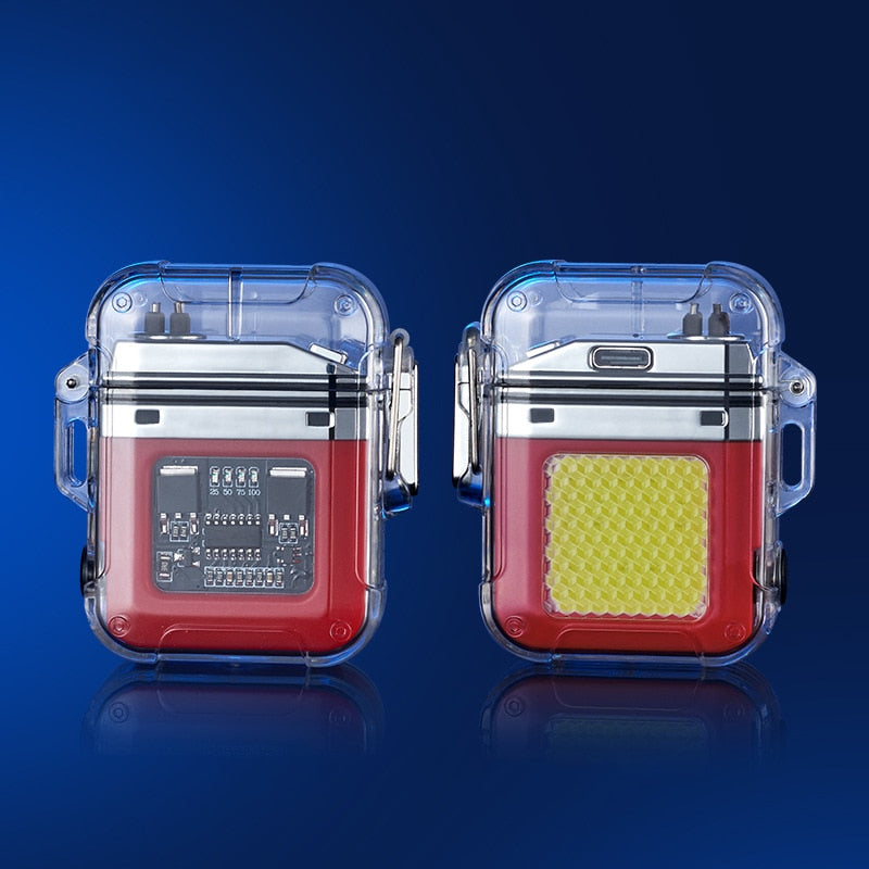 Med sin transparenta bågdesign kan du se ljuset tydligt, vilket ger dig perfekt tändning även under tuffa väderförhållanden. Oavsett om det regnar eller skiner, kommer detta hållbara och vattentäta material hålla din tändare redo att användas. Dessutom fungerar den även som en praktisk ficklampa för oväntade nödsituationer. Missa inte detta oumbärliga verktyg för utomhusaktiviteter - skaffa din vattentäta elektriska tändare ficklampa idag!