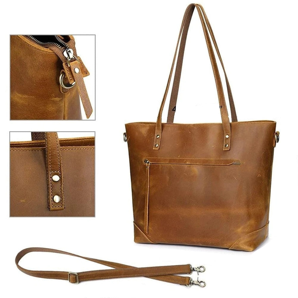 DESIGN: Vintage Leather Tote Bag har en klassisk och tidlös design med en touch av modern stil, och kan vara din vardagsväska som kan kombineras med alla dina kläder, från avslappnad till formell.
