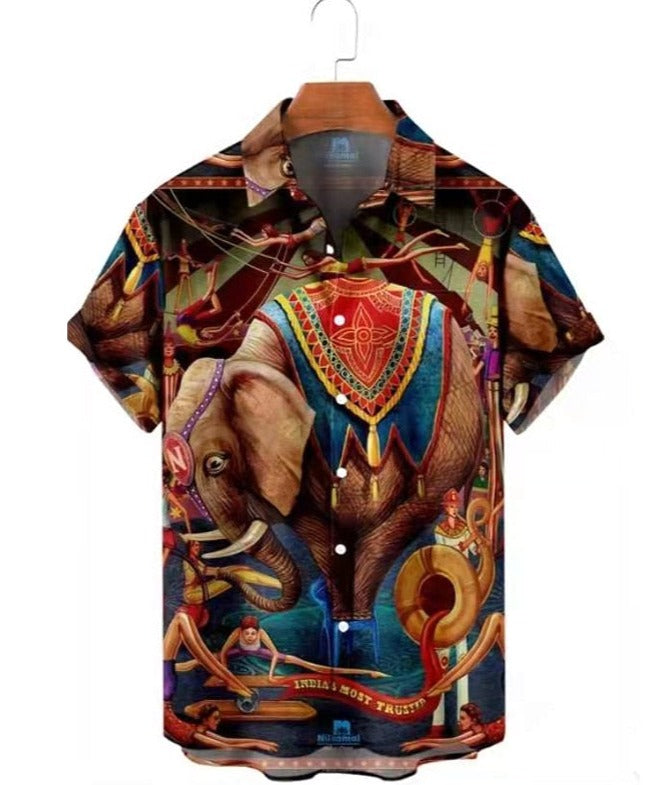 Visa upp din stil på din nästa sommarsemester med den här Vintage skjorta med elefanttryck! Det är en kombination av ett klassiskt och tidlöst modeuttryck och ett mjukt, andningsbart tyg som definitivt ger en bekväm bärupplevelse.